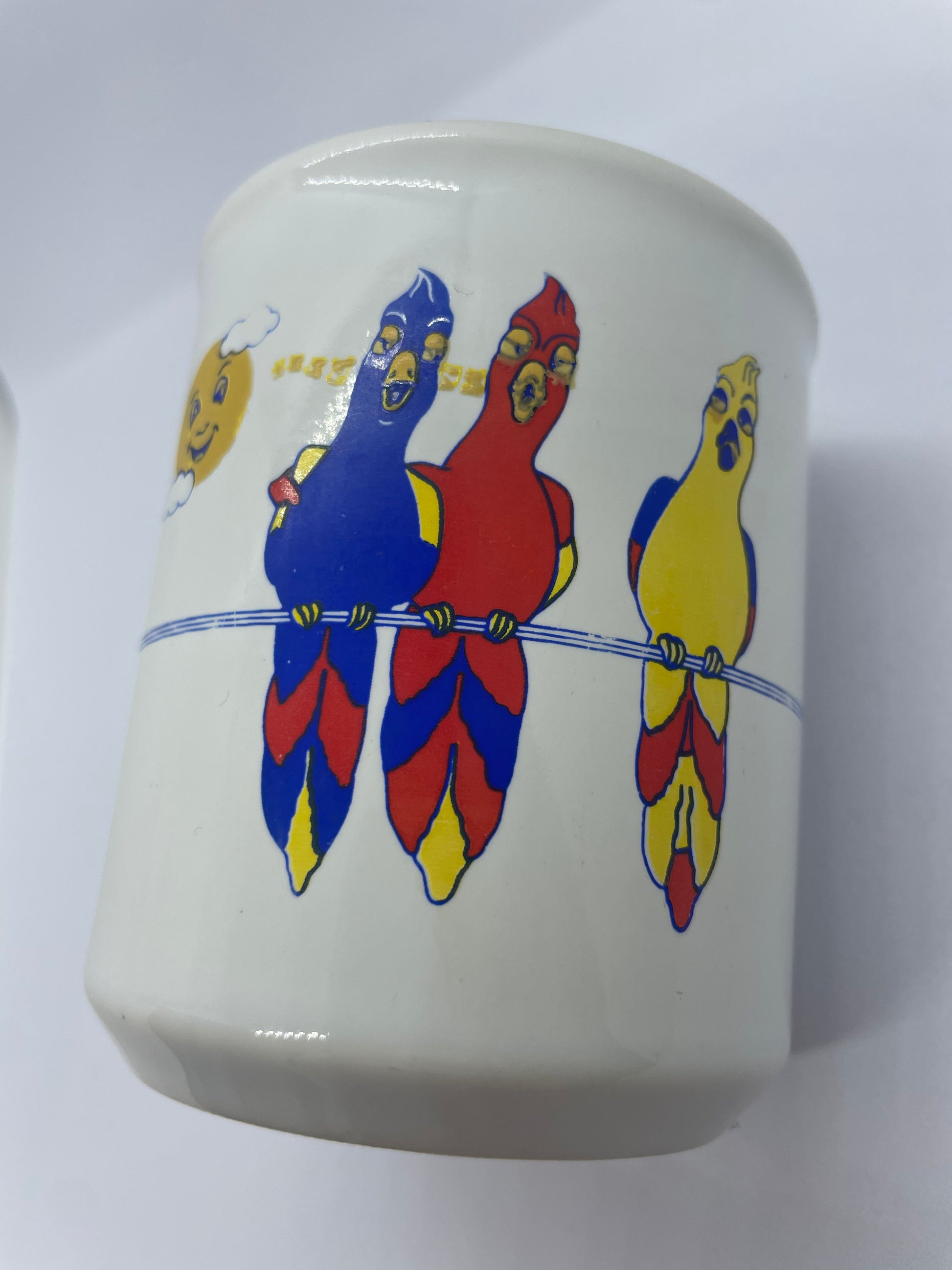1970’s RETRO 3 BIRDS MUG red yellow blue