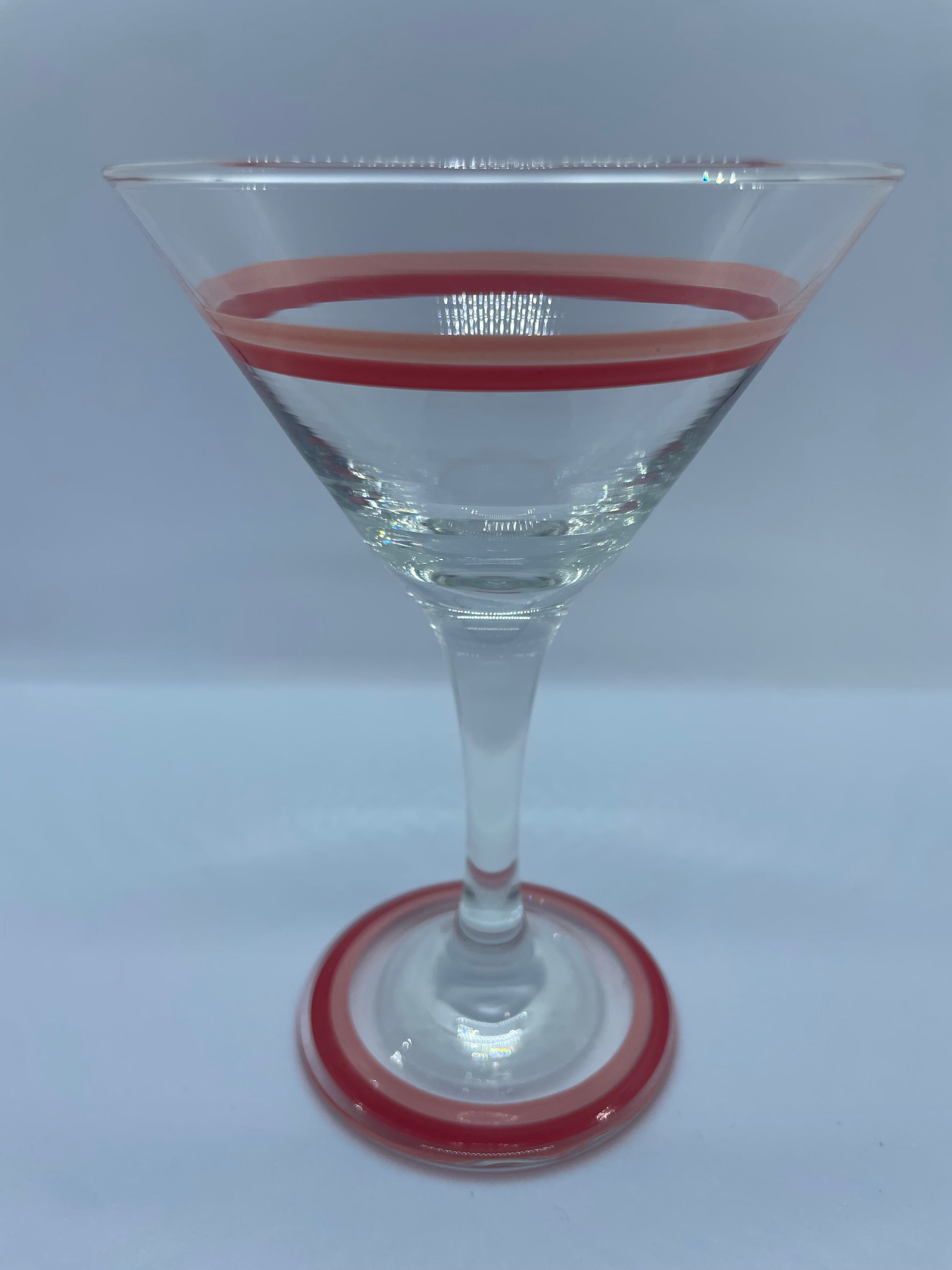 1960 MARTINI glass set of 2:pink and red stripe, classic martini glass
